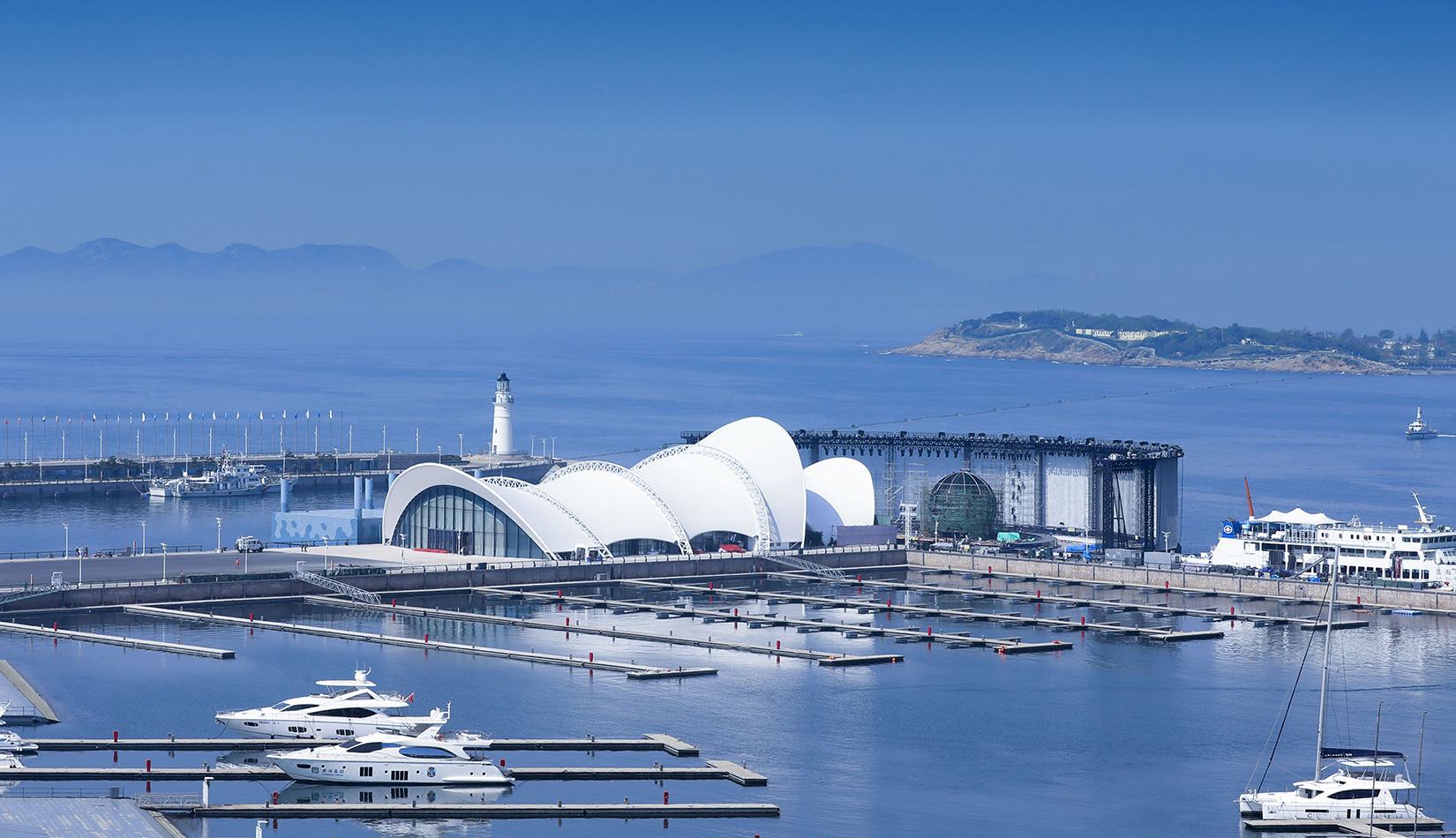 本項目在保留原有建筑主體結(jié)構(gòu)的基礎上,結(jié)合本次會議活動的相關需求,對其規(guī)模、形象、功能進行改造提升。主題材料采用輕盈的鋼結(jié)構(gòu)與膜結(jié)構(gòu),造型宛如海浪中靈動的風帆,彰顯青島這座海洋名稱、帆船之都的獨特魅力。