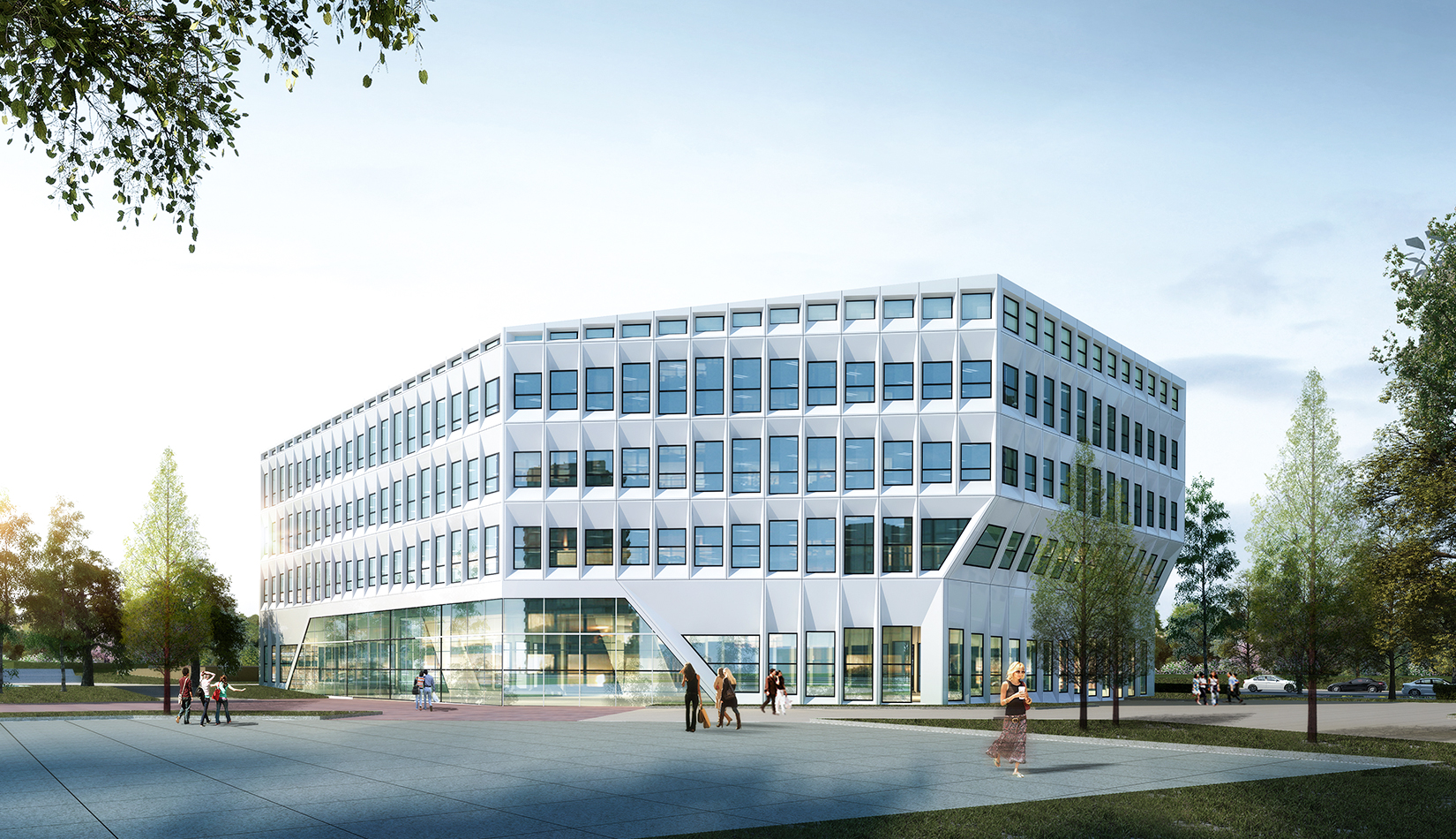 基地東望黃海海域,方案規(guī)劃運(yùn)用海浪形態(tài),曲折自由,同時(shí)變化豐富的立面設(shè)計(jì)手法呼應(yīng)海面的波光粼粼。海洋生物資源開發(fā)中心金屬質(zhì)感的立面用如海浪般曲線變化的立面設(shè)計(jì)手法體現(xiàn)海洋建筑特色,以“海洋波浪”為入手點(diǎn),突破了科研平臺單一化的立面設(shè)計(jì)。